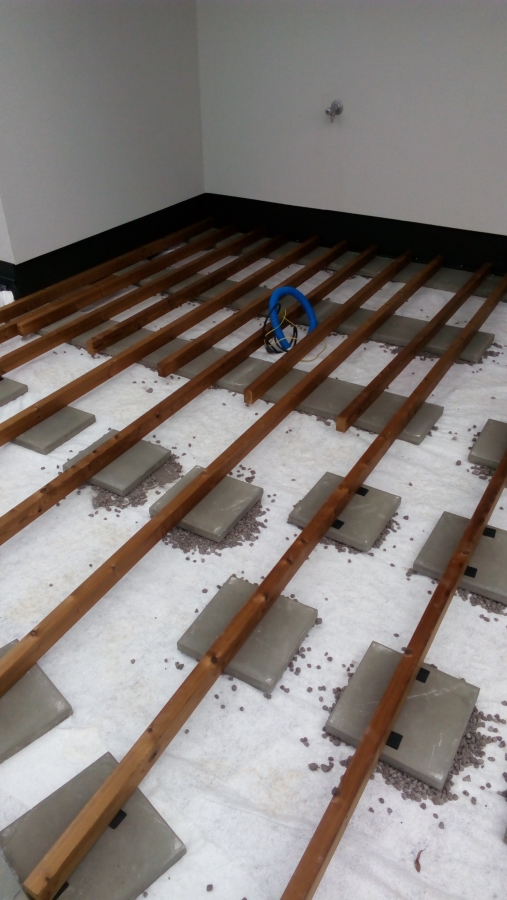 Podklad kamenivo,zhutněno,geotextilie a kachle.