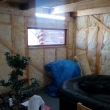 Uvnitř podlaha z osb,stěny zatepleny vatou 14cm a záklop osb.